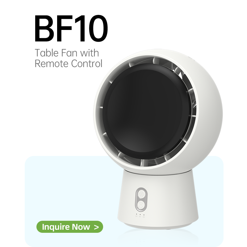 The F10 is a compact rechargeable table fan designed for home, office, and bedside use. Featuring remote control, dual-direction oscillation, multiple wind speeds, and a built-in timer, it provides convenient and customizable cooling for daily comfort in hot weather.